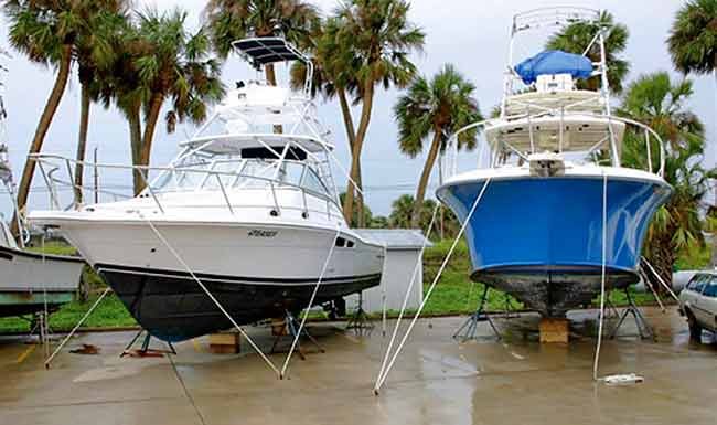 Anyone who had dealt with the aftermath of a hurricane knows that the greatest damage, by far, is done by storm surge, water, and waves, and not simply the force of the wind. Boat owners preparing for a storm need to get the boats out of the water and onto high ground. Tying boats down is an added preventative measure and seems to be gaining in popularity among many marinas. When recently searching out a location to store my own boat in Ft. Pierce, Florida, both Harbortown and Riverview marinas offered the tie-down service for boats in storage. Needless to say, mine is now strapped down.