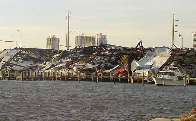 Dan Rutherford: I remember a high-rise marine storage facility — a "boatel" — near Miami that was destroyed in Hurricane Andrew and another outside of Charleston, South Carolina, that was collapsed by Hurricane Hugo. Like most storage buildings, they probably appeared to be sturdy but upon closer inspection, they lacked diagonal struts. There were gussets on the frames but gussets didn't provide the support needed to withstand a strong hurricane and the structures were blown over. There were several hundred boats stored inside and all but a few were a total loss. Collapses of rack storage buildings bring with them several other concerns, including the potential for fuel leaks, fires, and explosions. That's why the area around a collapsed building must be secured by first responders.